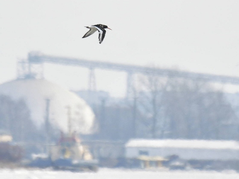 14.03.2023. Jūras žagata (Haematopus ostralegus) 1 Mangaļsalā, Rīga (I.Deņisovs). Agrs pirmā pavasara migranta novērojums.